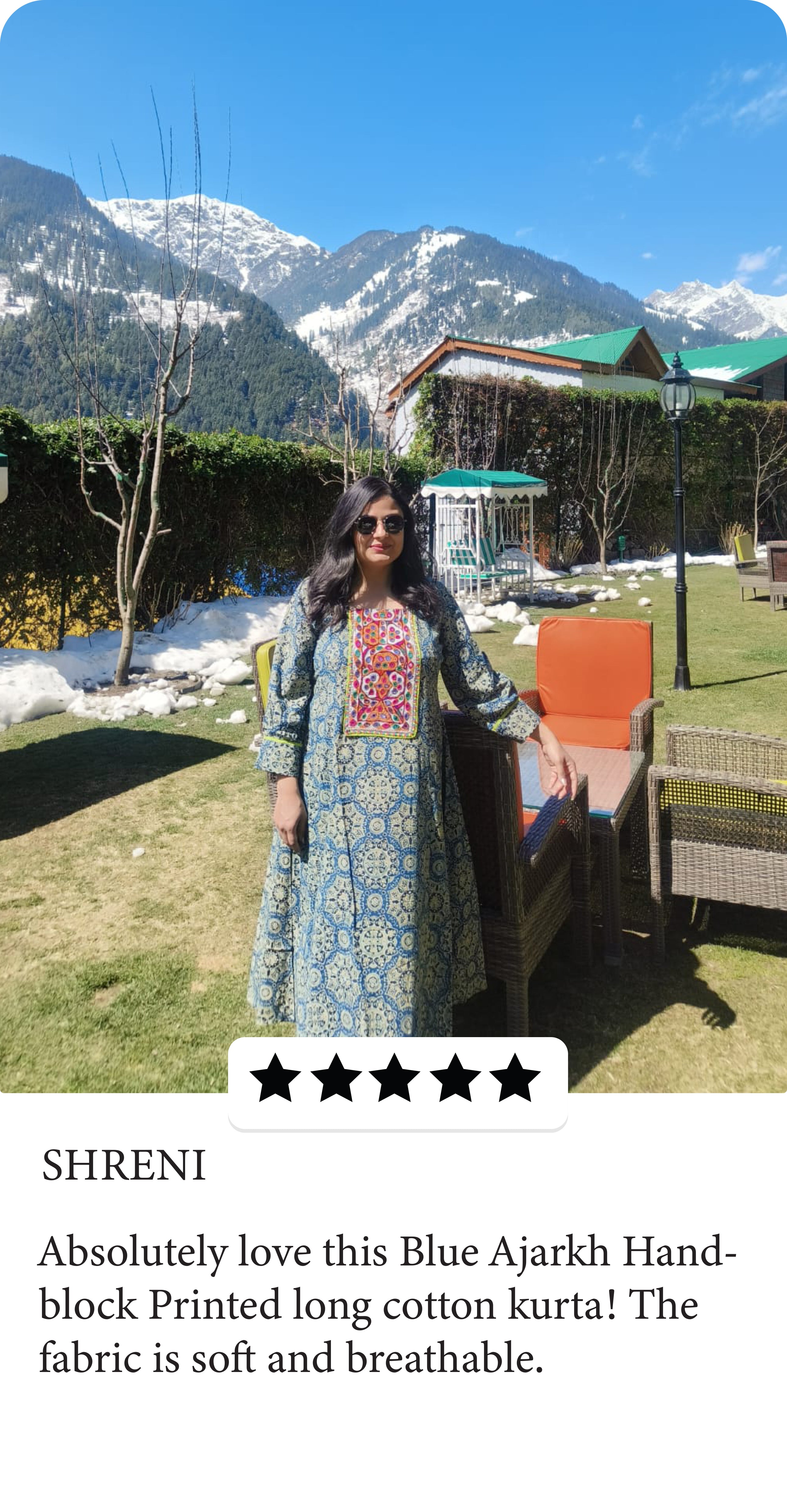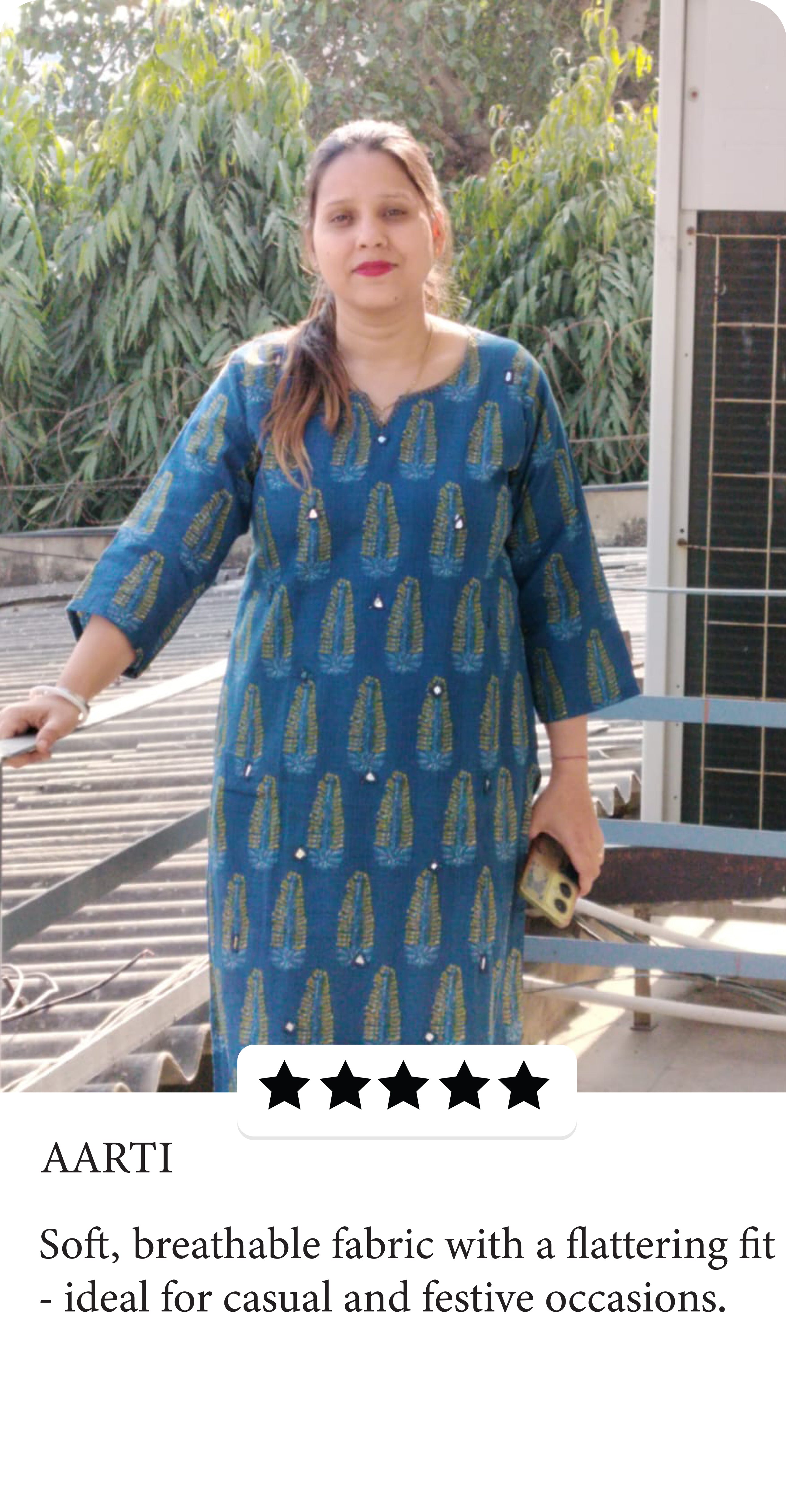 Blue Kalamkari Hand block Cotton Kurta with collar