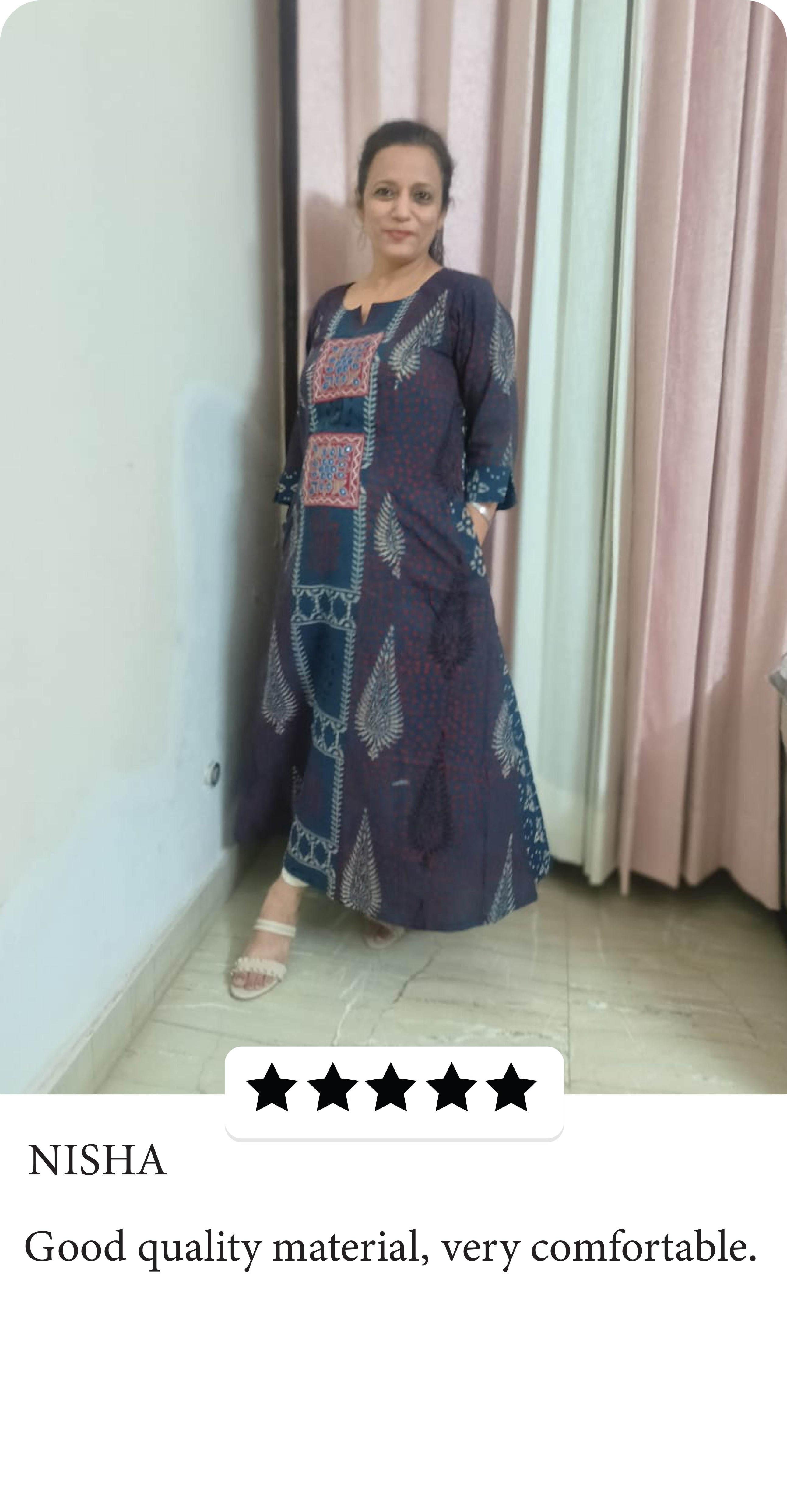 Black and Blue Kalamkari Hand block Printed A line Kurta