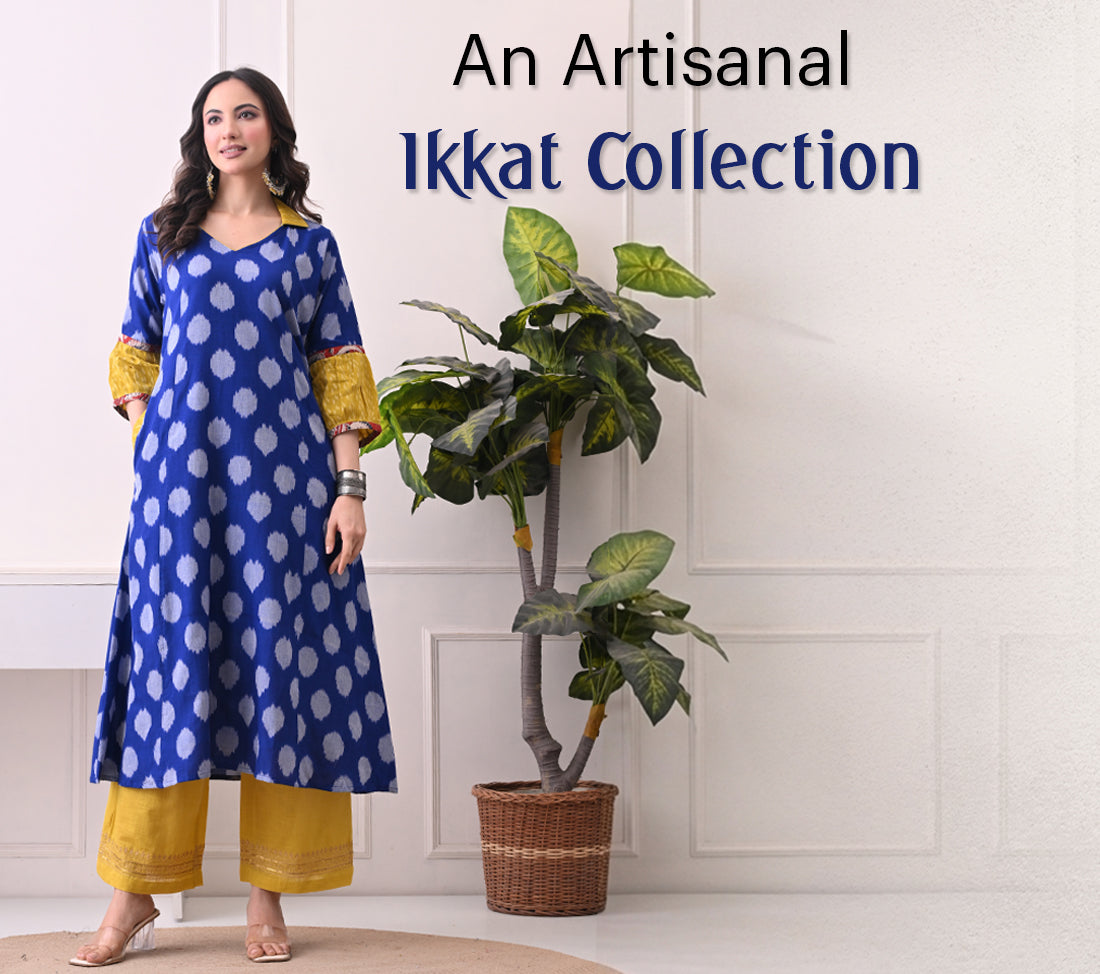Yellow Handwoven Ikkat Cotton Kurta