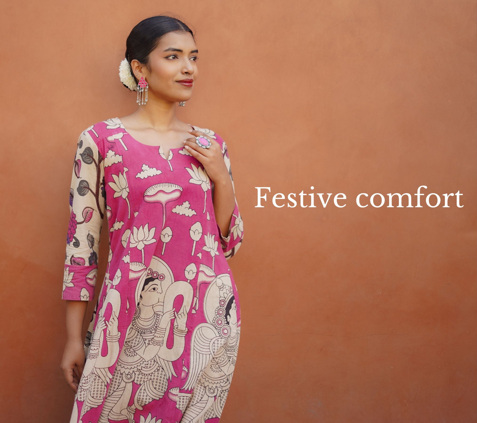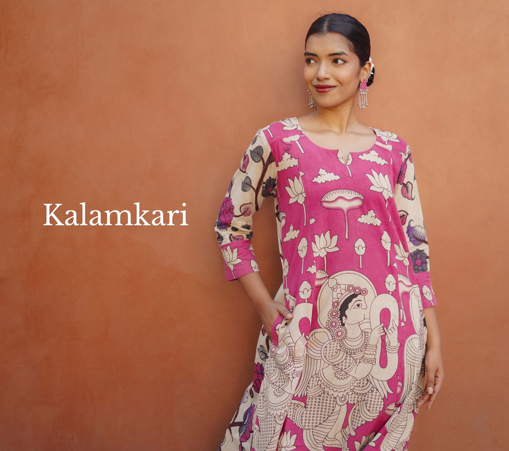 Welcome to our exclusive collection of Kalamkari kurtas, where timeless tradition meets...