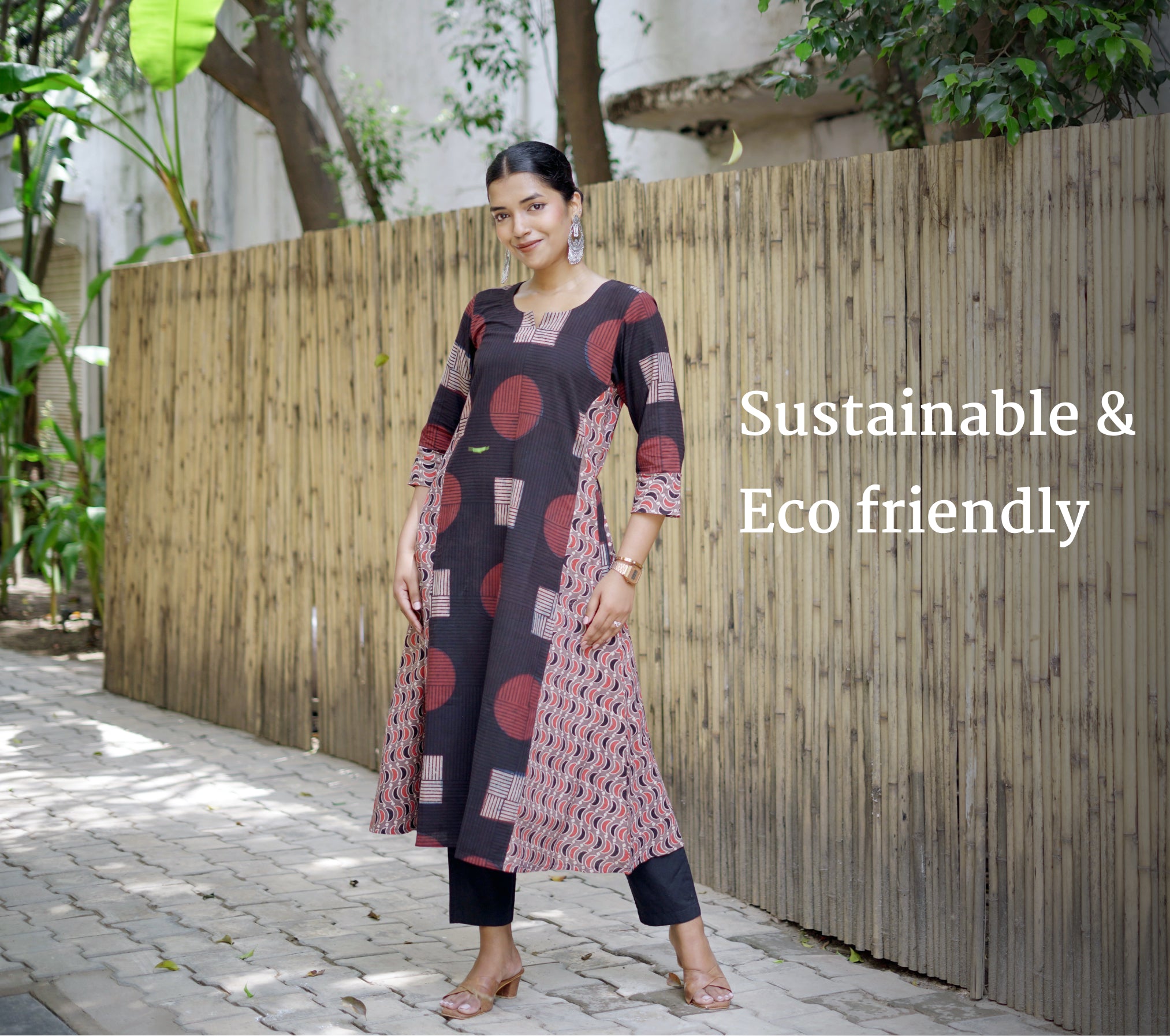 Black and Blue Kalamkari Hand block Printed A line Kurta