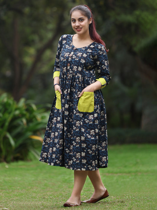 Sea Green Sanganeri Hand Block Printed dress
