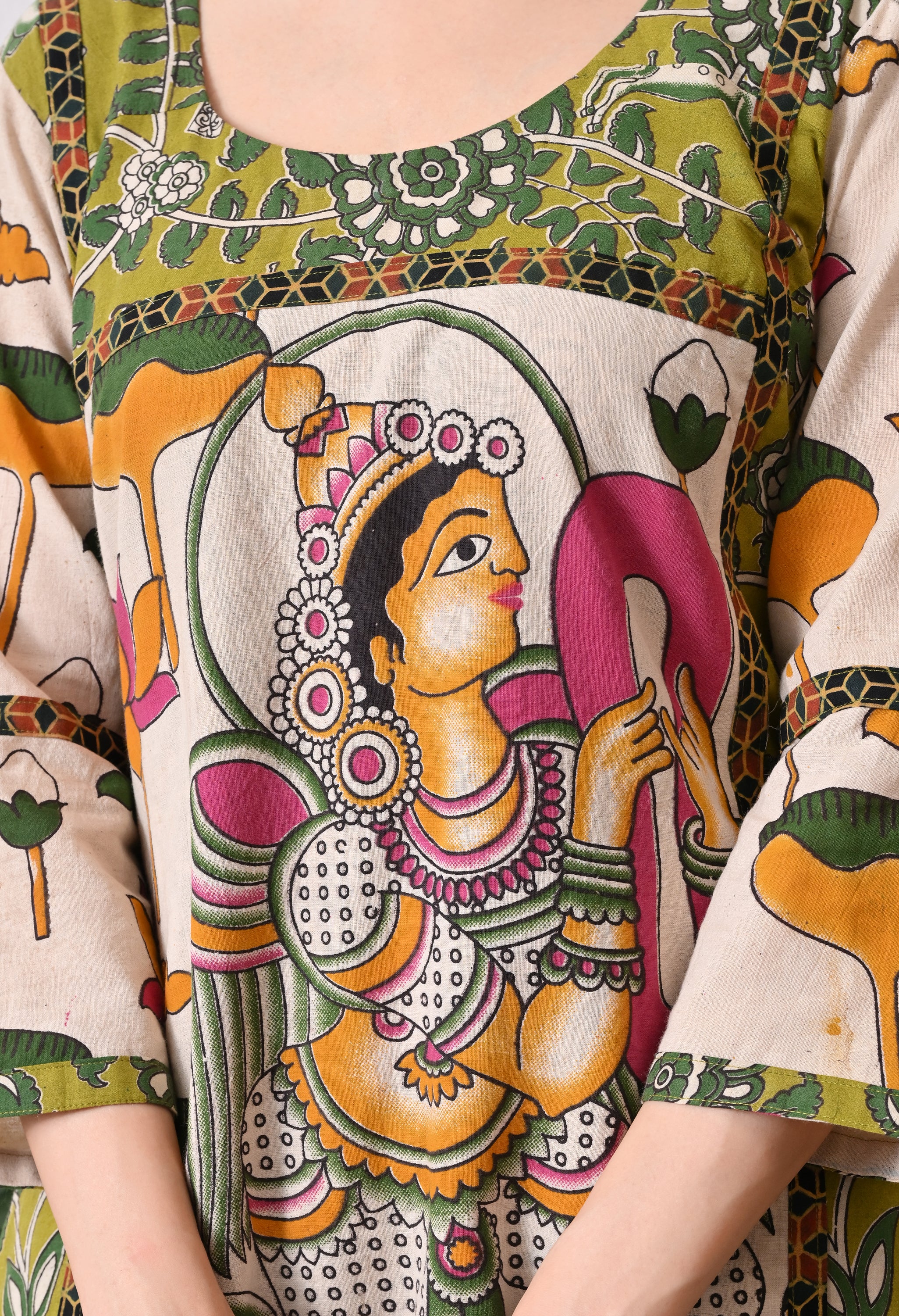 Green and White kalamkari Cotton Kurta
