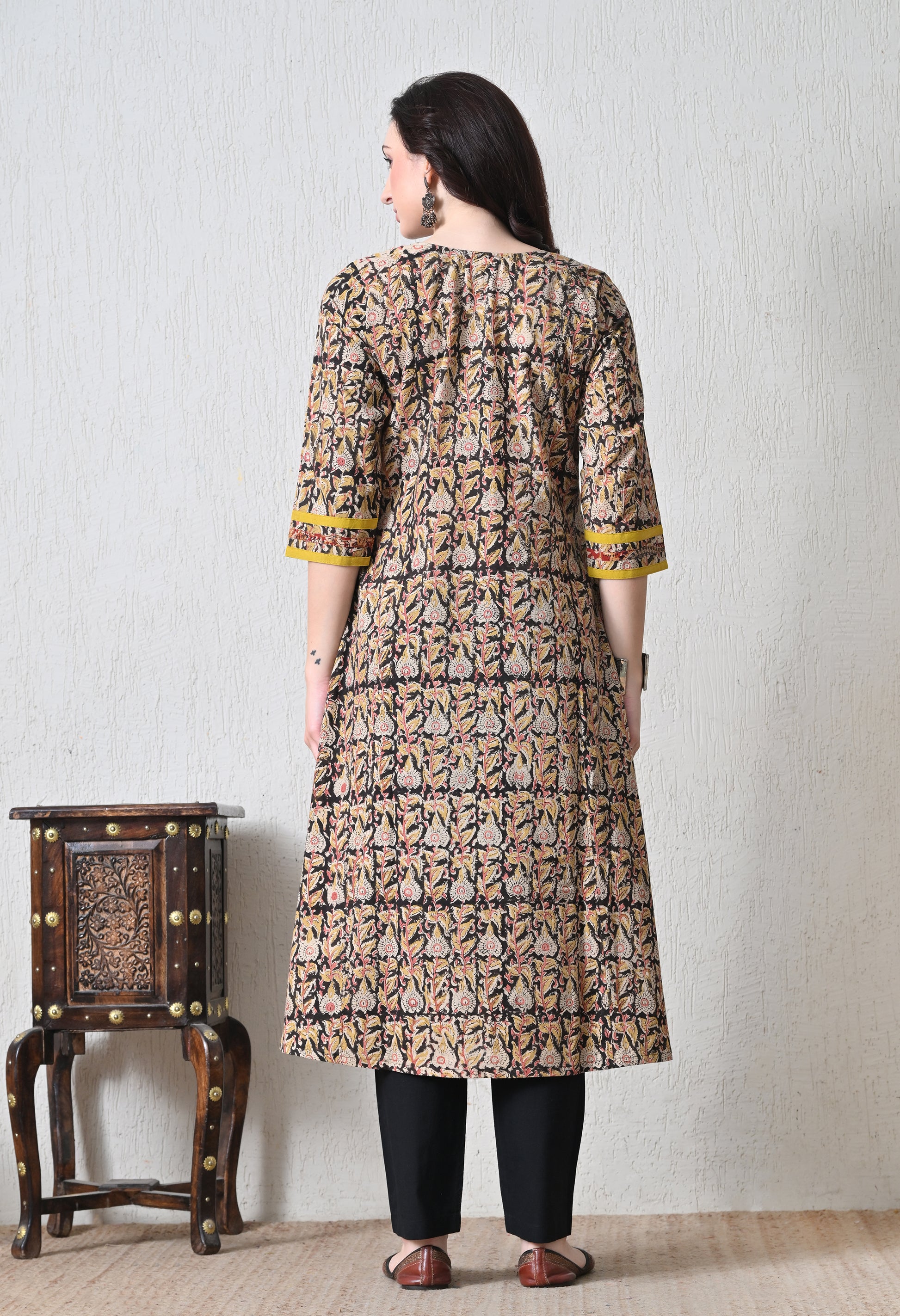 Black and Yellow Kalamkari Hand block Cotton Kurta