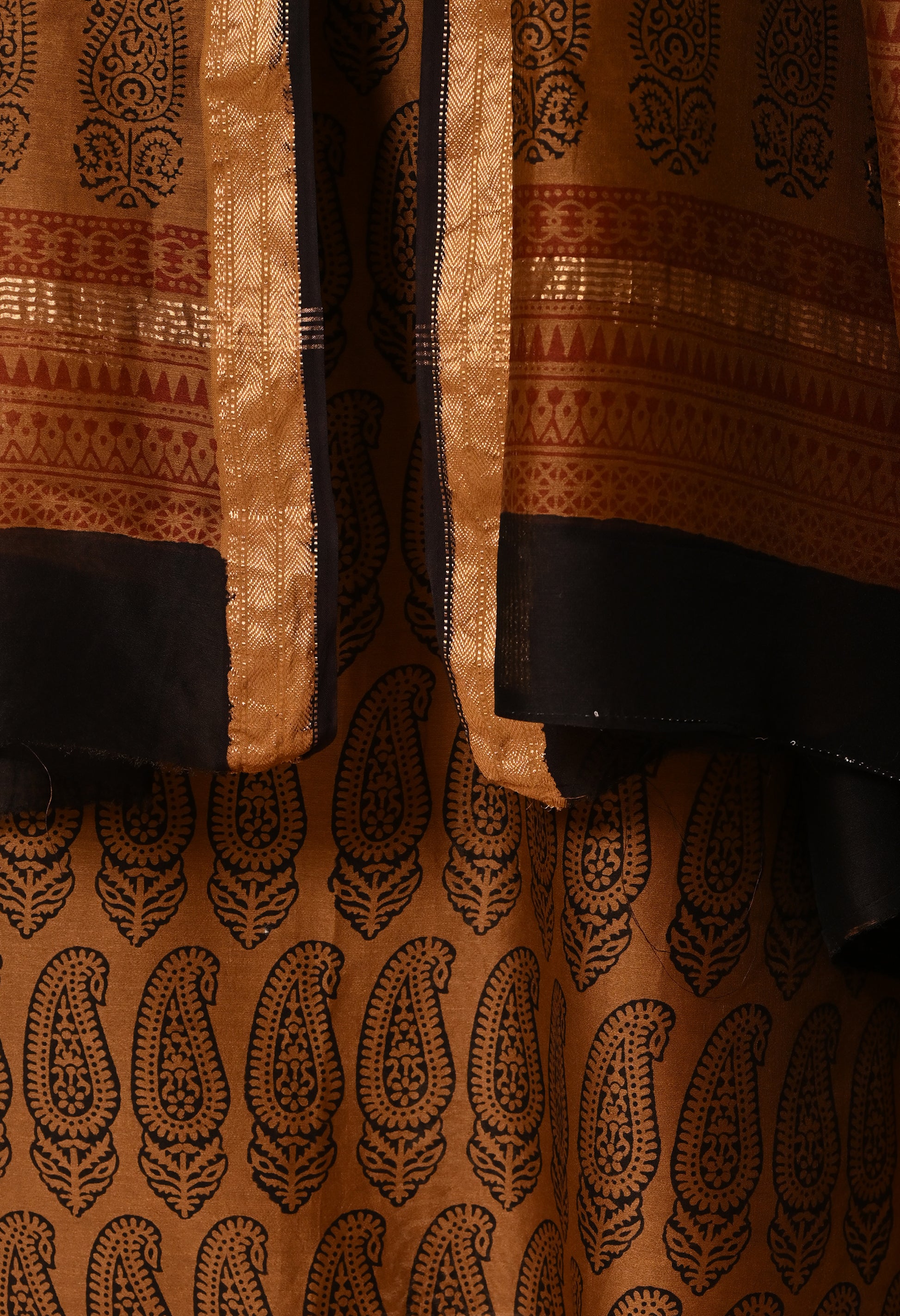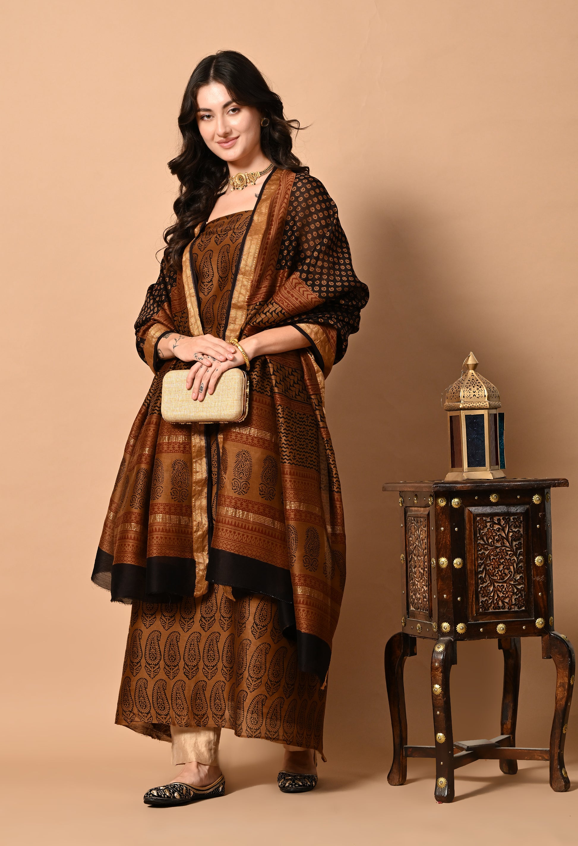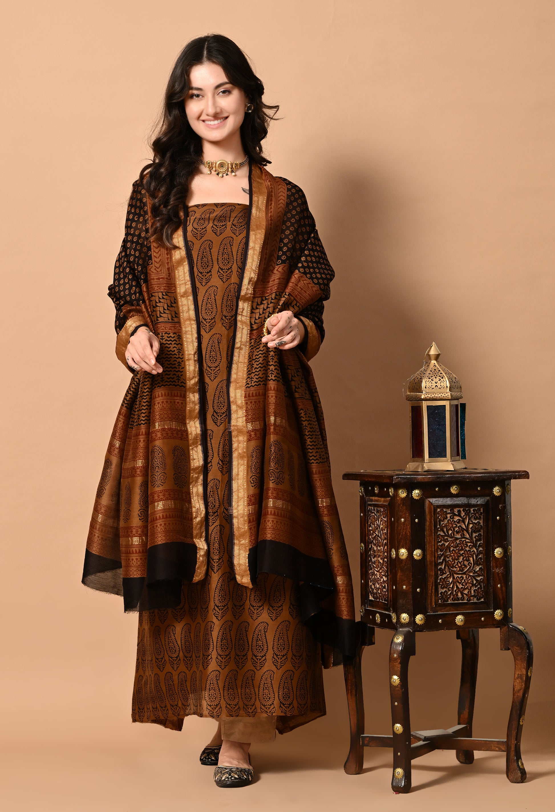 Black Bagh Hand Block Printed Silk Cotton Handloom Kurta Material and Dupatta