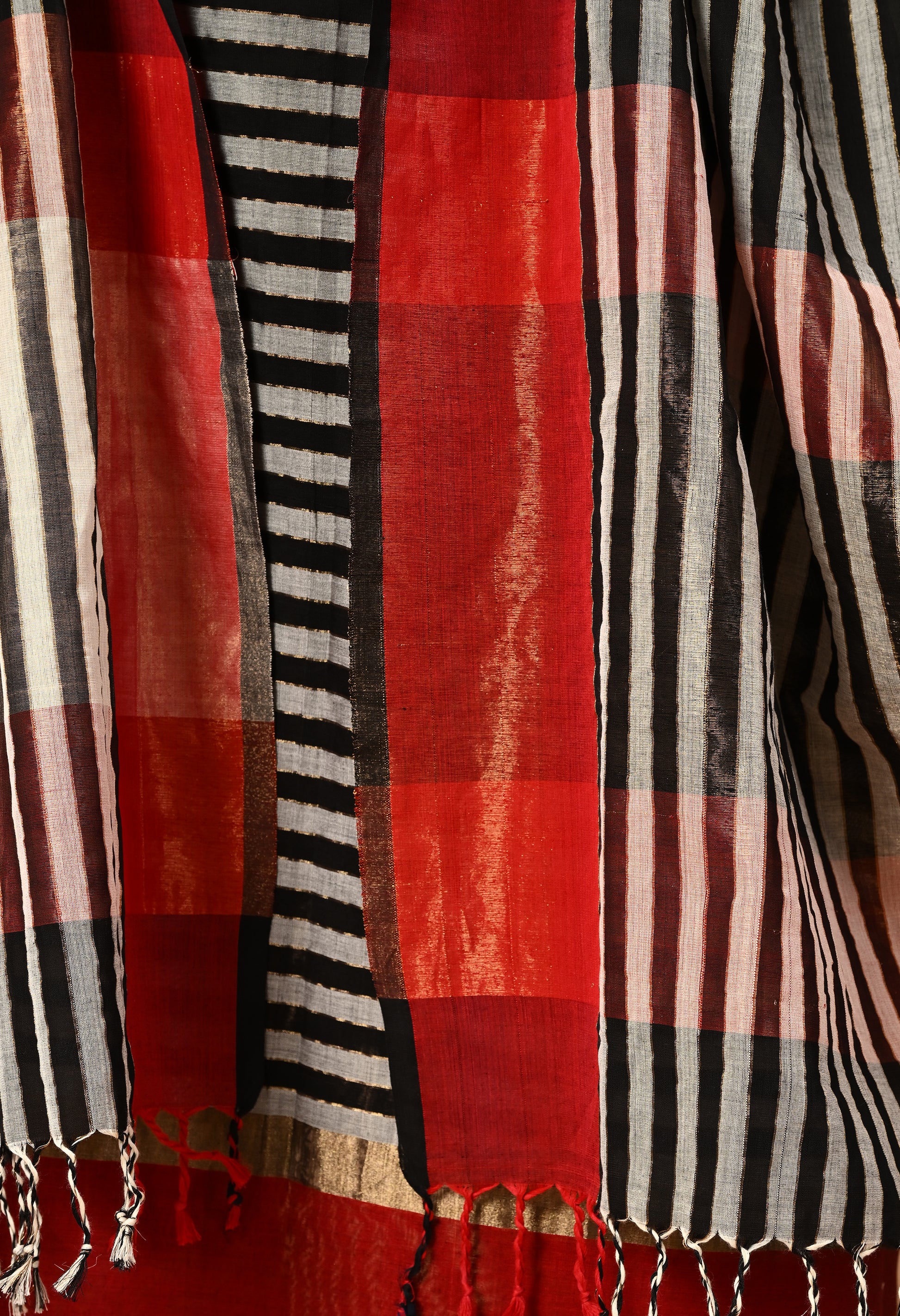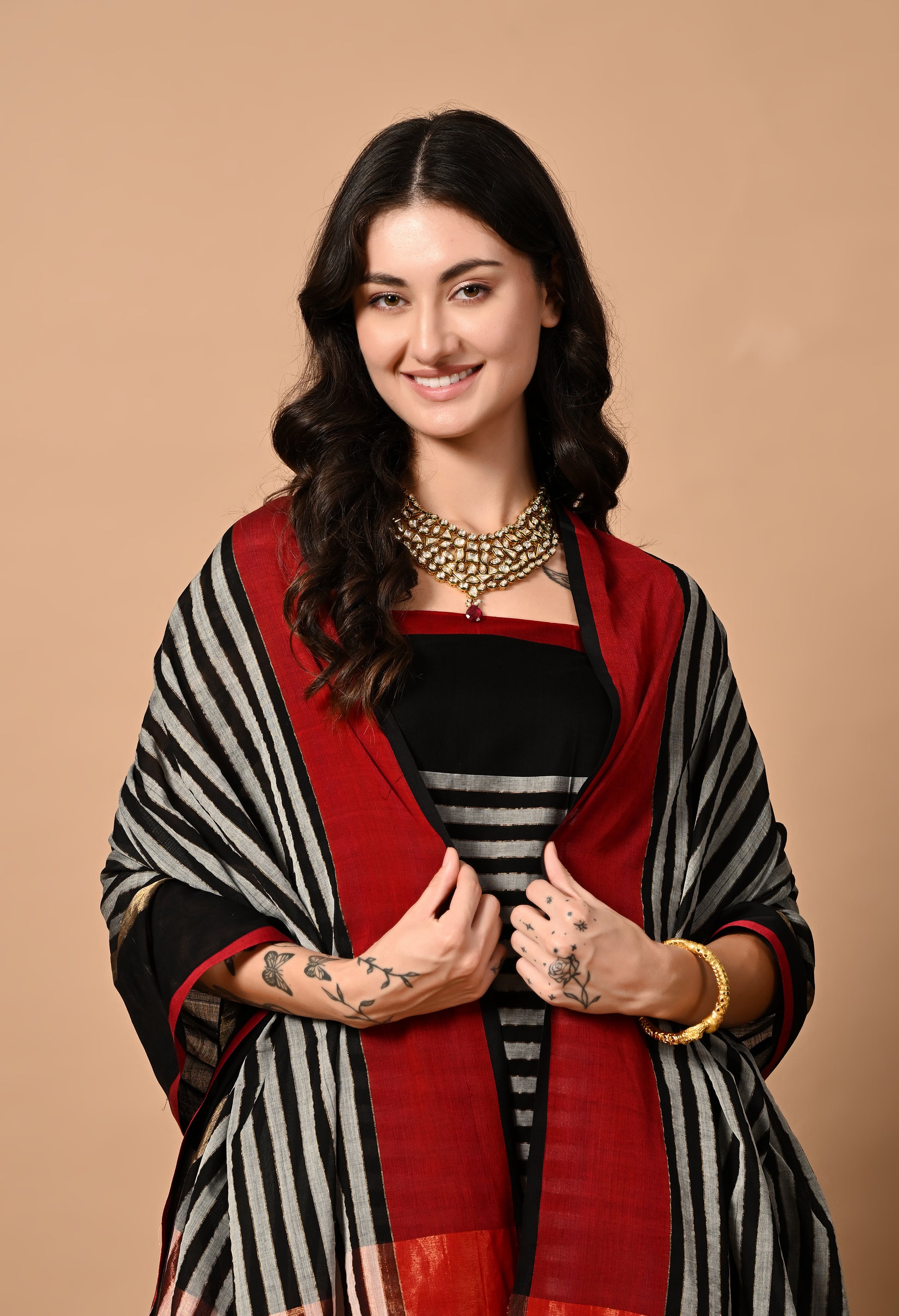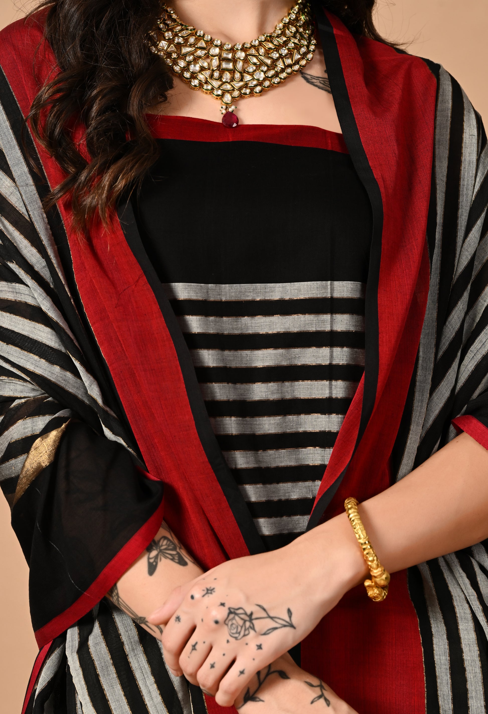 Black Maheshwari Silk Cotton Handloom Kurta Material with Dupatta