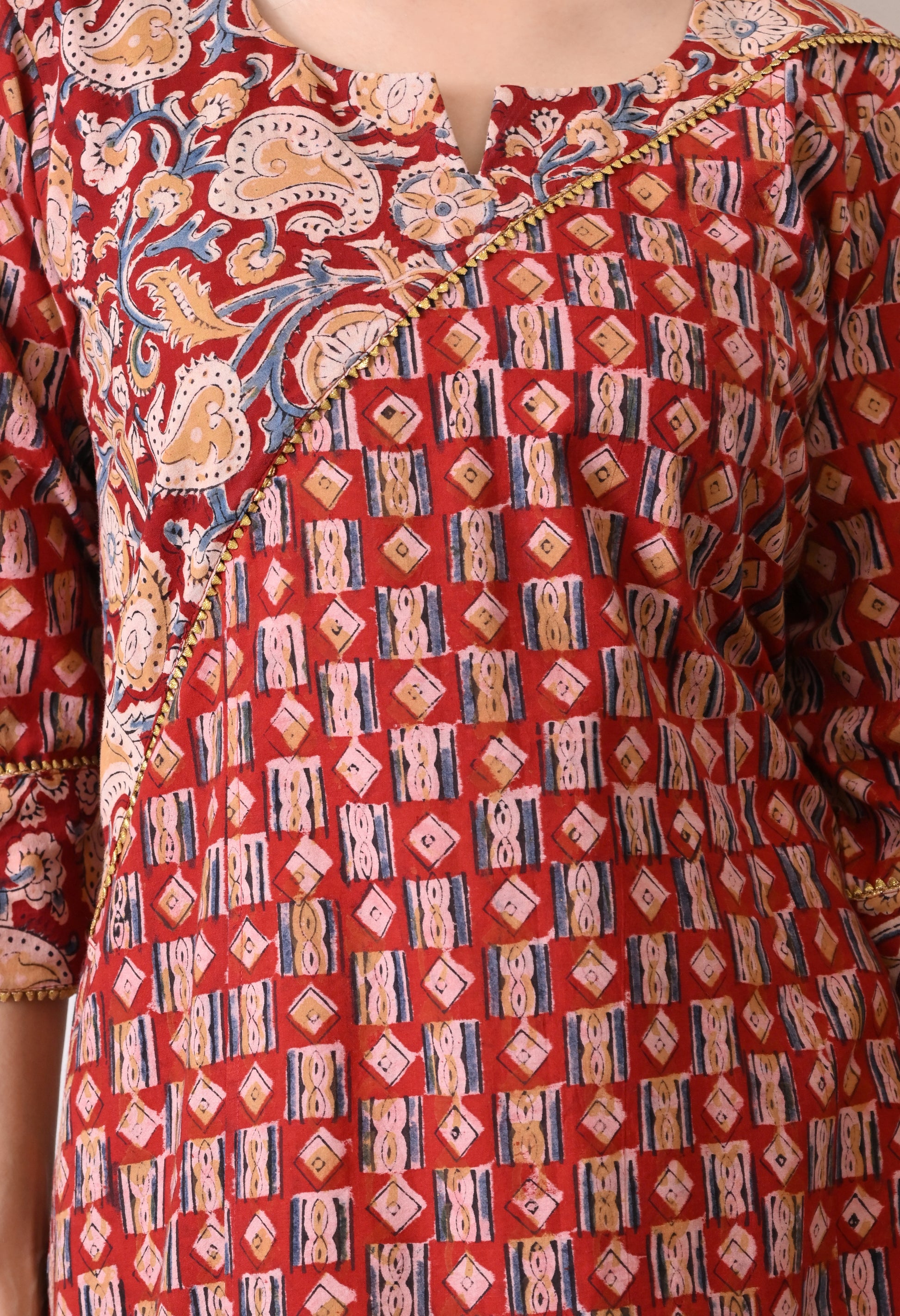 Experience the beauty of handcrafted elegance with our maroon Kalamkari handblock cotton kurta. The rich maroon tone paired with detailed motifs celebrates the essence of heritage while keeping your look effortlessly stylish.